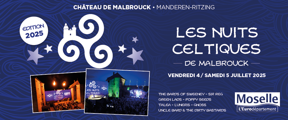 Vivez un moment inoubliable au cœur du Château de Malbrouck avec des artistes venus de toute l’Europe ! Laissez-vous emporter par la sonorité de la musique celtique à la fois festive et entraînante.